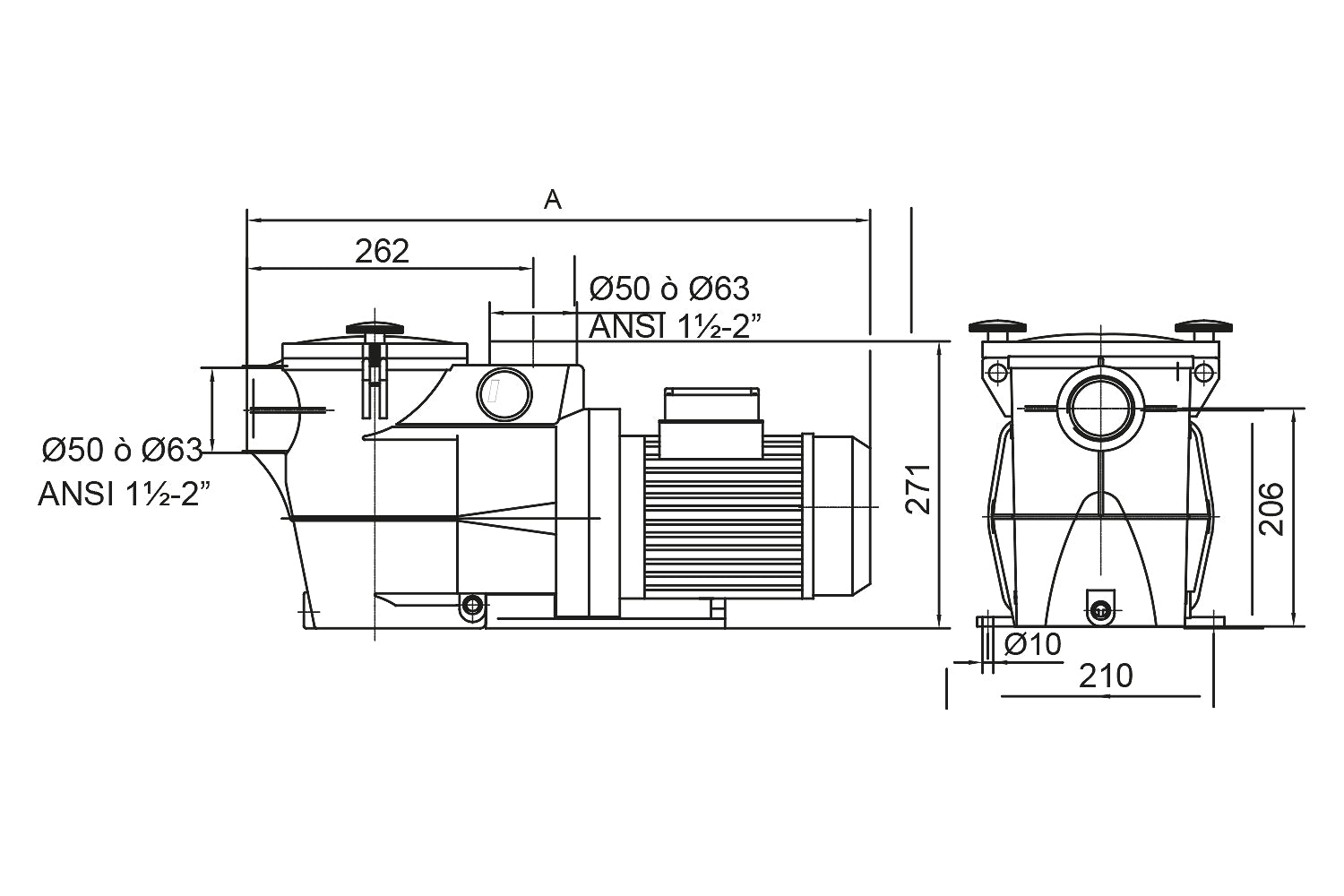 » Connections: includes slip unions for ø 50 or ø 63 mm